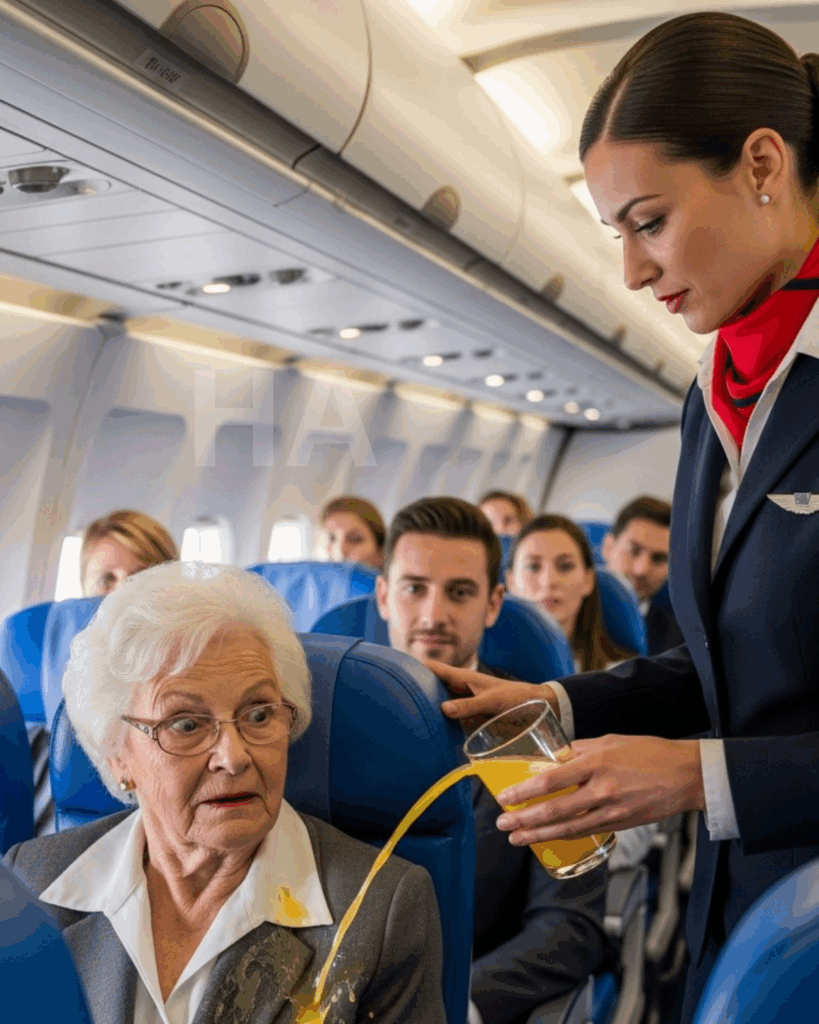 The senior flight attendant, Victoria Hale, approached with her platinum-blonde hair pinned in a perfect, severe chignon and a smile that was sharpened like a blade. She ruled the first-class cabin with an imperious, condescending arrogance, treating the passengers less like valued customers and more like subjects in her own, personal, airborne kingdom. Instead of the requested water, she shoved a small, plastic cup of lukewarm orange juice into Eleanor’s hand and sneered, her voice a low, contemptuous purr, “Full beverage service will begin after we have reached cruising altitude.”