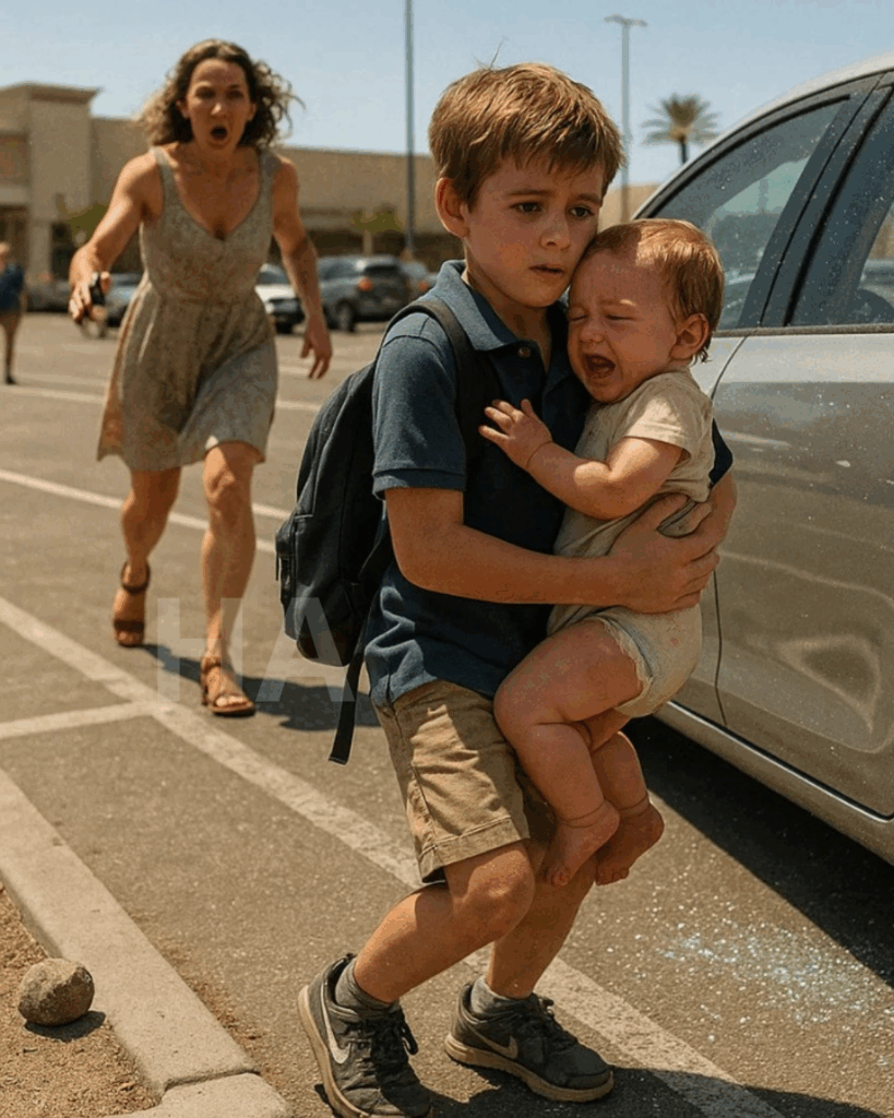 The boy stood there, clutching the baby, when a woman’s scream pierced the air—“What are you doing to my car?!”
