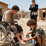 Blackwell doesn’t look impressed, and that tells you something important. A man like him isn’t afraid of law because he’s been buying it for years. He gestures, and his riders fan out, hands near holsters, bodies loose with practiced menace. For a moment, the yard is balanced on a blade edge, one twitch away from bloodshed. You feel your own pulse hammering, but you keep your stance steady, because fear is contagious and you won’t hand it to Samara. Harlan speaks again, louder, calling out charges, naming crimes, turning Blackwell’s private tyranny into public words. Blackwell’s eyes harden, and he says, “You’ll leave with your badge in your pocket, Marshal, or you won’t leave.” That’s when a smaller figure appears near the stable door, moving fast, slipping between shadows. A boy, thin and dirty, pauses when he sees Samara, and even from a distance you can feel their recognition collide. “Daniel,” Samara breathes, and the boy starts running toward her like his body decided before his brain could hesitate.