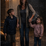 Not the ordinary kind, not the sleepy quiet of a house between dinner and bedtime. This silence feels staged, like a courtroom a second before the verdict drops. You stand there soaked from the drizzle, one hand gripping your daughter’s shoulder, the other wrapped around your son’s small fingers, and stare into the house you were told you would never enter again.