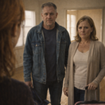She starts talking fast, words tumbling out like she can outrun consequences if she moves her mouth quickly enough. She tells you she “got better,” and then she tells you she “didn’t know how to tell you,” and then she admits she didn’t want to go back to the life you had, the small house, the small salary, the same routines. She says she felt trapped, that she panicked, that she needed time, and her excuses are dressed up like psychology to make them look respectable. The man, her old lover, clears his throat and says something about “starting over,” about “opportunities,” about how “it’s complicated.” You stare at the suitcase and it looks like a mouth, open and hungry, ready to swallow everything you worked for. You think about the money you hid in the closet, the emergency cash you saved from late-night repairs, the bills you counted with shaking hands to buy medication, to pay for supplies, to keep your house from falling apart. You see those bills in her hand now, and your chest tightens not because of greed, but because every bill has your fingerprints of sacrifice on it. You realize she didn’t just fake paralysis, she used your love like a paycheck. And that is when something inside you goes quiet, like a switch flipping off.