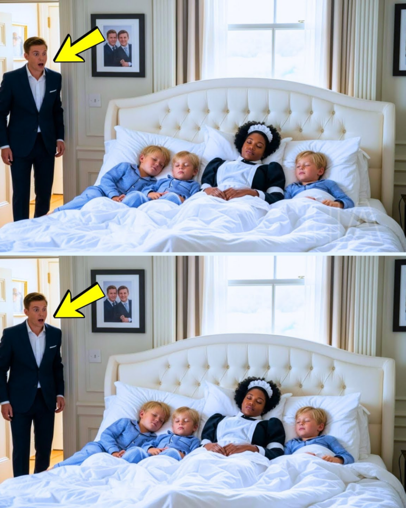 Her eyes opened slowly. No panic, no guilt. Mr. Morrison, she said softly. I can explain. But James wasn’t listening. His face flushed red. “You’re fired,” he said. “Get out of my house now.” Martha didn’t argue. She moved carefully, sliding out from between the boys without waking them.