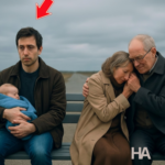 Caleb’s body went rigid. He wrapped his arms tighter around Ellie, terrified someone might take her away. From the darkness emerged a tall man in a dark overcoat, polished shoes sinking into slush. He stopped under the broken streetlamp, frowning at the two tiny figures on the bench.