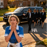 Then one ordinary morning, while you sweep the dust off your front step, the street goes quiet in a way that feels unnatural. You look up and see a black SUV roll slowly to a stop in front of your house, glossy and expensive, the kind of vehicle that doesn’t belong on your road. Your stomach tightens, because in a small town a car like that means trouble, or money, or both. The engine hums softly, and for a second you wonder if they have the wrong address. Then the driver’s door opens, and a woman steps out wearing a dark coat that probably costs more than your monthly rent. Another door opens. Then another. Four women stand by the SUV, and something about the way they look at your house makes your skin prickle, like you’re being seen too clearly.