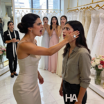 One bridesmaid steps forward, uncomfortable, maybe human enough to feel shame.