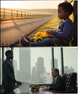 A little Black boy, about four, sat in the grass at the edge of a long country road, back pressed to dark wood. His blue sweatshirt was bunched at the elbows, blue jeans dusty at the knees, dark sneakers pointed toward the asphalt like they didn’t know which way to go.
