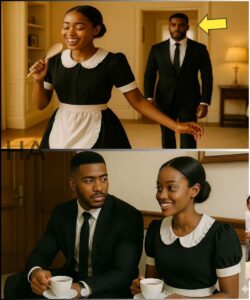 He leaned against the doorframe, stunned. This was not the silent maid who kept her eyes down. This was not the careful shadow who moved like she was afraid of existing.