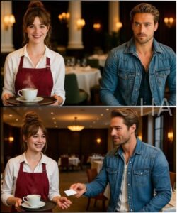 He blinked, startled—not by the words, but by the warmth behind them. The speaker was a young waitress with bright brown eyes and a name tag that read Harper Wells. Her energy cut through the stiff silence of the Magnolia Bistro like sunlight through fog.