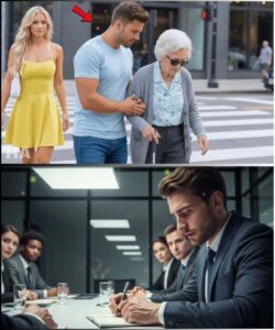She stood alone at the corner, just before the crosswalk, as if she’d been placed there by a director who wanted to see what the world would do. She was elderly and frail, her shoulders small and slightly rounded, wrapped in an old beige coat that looked far too thin for the weather. A white cane trembled in her gentle, wrinkled hand.