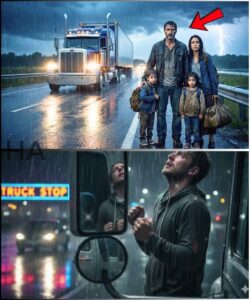 Inside the diner, the warmth hit them like salvation. The smell of frying onions and coffee wrapped around them. Other truckers glanced over, then glanced away, their eyes catching on the family’s soaked clothes and muddy shoes.