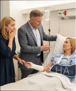 I pushed myself upright on the hospital bed, ignoring the sharp pull in my chest. “I’m his wife,” I said slowly. “Claire Dawson. And you are?”