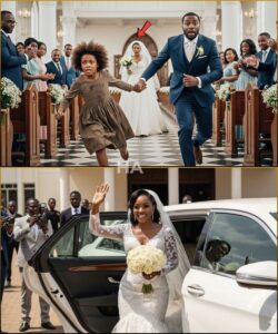 The church inhaled. The bride’s mouth fell open in a silent, offended “O,” as if even air had no right to touch her without permission. Security moved like a trapdoor snapping shut. Two men in black suits rushed forward, already reaching for the girl’s shoulders, ready to peel her away from the scene like a stain.