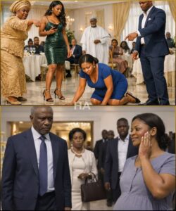 Slowly, carefully, because pregnancy turned every movement into an equation of pain and balance. Her cheap dress hung loose and wrong in the glittering room, but when she stood, the atmosphere changed in a way people couldn’t name.