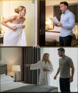 Amelia’s grip tightened on the towel. It slipped an inch anyway, heavy with water. She pulled it back up with a sharp, humiliating awareness of everything beneath it. The air conditioning hummed like a witness.