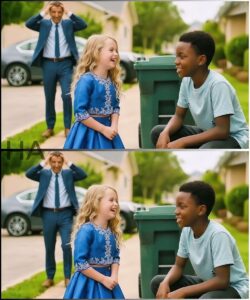 “Hey there, little one,” he said softly. “Didn’t mean to make noise. Just collecting recyclables. Saving the planet, you know?”