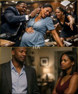 The man who struck her, polished and powerful, straightened his suit like he’d brushed lint from his sleeve. His face carried the calm of a person who had never been corrected in public. Beside him, a woman in designer heels stepped forward with a smile sharpened into something bright and cruel. Cameras flashed as she slapped the pregnant woman again, harder. Not as a loss of control, but as a performance.
