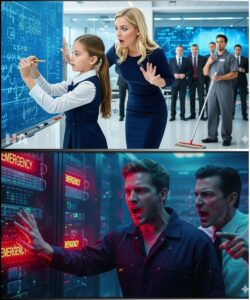 Sophie Whitmore stood on the small platform by the board, one foot slightly turned inward the way children do when they’re trying not to draw attention to themselves. Her dark hair was braided neatly down her back. Her cardigan sleeves covered part of her hands. She didn’t look at the crowd. She didn’t look at the CEO. She looked only at the equation.