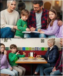 The father was tall and lean, kind-eyed behind wire-rim glasses, dressed in worn jeans and a flannel shirt that belonged to comfort, not corporate ambition. He scanned the café like someone who had learned to read rooms quickly, not for power, but for safety.