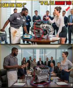 “Here’s a deal,” she said, and smiled the way a blade smiles in sunlight. “Maintenance boy, fix this two-million-dollar engine that MIT engineers couldn’t repair… and I’ll marry you right here.”