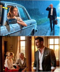 At first, he was only a shape at the edge of the sidewalk, almost swallowed by the rain. As she slowed, her headlights caught the outline of an elderly man hunched beneath the storm. He had no umbrella. No hood. Just a soaked wool blazer clinging to his thin frame.