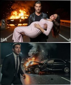 Her seat was jammed. The metal around her door had folded inward, trapping her legs. Every attempt to shift sent a fresh wave of agony through her abdomen. Panic started climbing her throat, sharp and fast, because her body knew what her mind hadn’t caught up to yet.