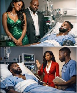 Pendo stood beside the hospital bed like she belonged there. Her clothes were expensive enough to make the room feel smaller. Her hair was perfect. Confidence wrapped around her like armor, the kind that makes other people step aside without being asked. Next to her stood a short, bold man with a heavy body and a round stomach stretching against his suit. Gold flashed at his wrist. Money clung to him louder than his words.