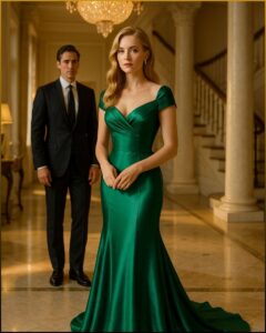 The hours that followed were a whirl of anticipation. Evelyn chose a gown, emerald silk that flowed like liquid light across her frame. For the first time, she didn’t feel like Alexander’s shadow. She was a presence of her own, radiating poise and elegance. At the hotel, crystal chandeliers cast golden light across the ballroom, men in suits and women in gowns moving gracefully, glasses catching reflections of their surroundings.