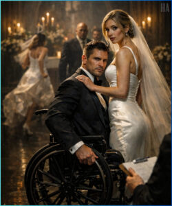 In the center of the ballroom, Adrian locked his chair and extended his hand. Emily took it. He placed one hand lightly at her waist and guided her through a dance built around illusion, timing, and control. She moved. He directed. From across the room it looked almost intimate. Up close it felt like surviving together in public.