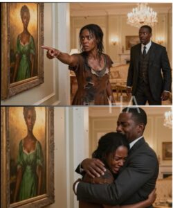 Rainwater dripped from Sandra’s hair onto the marble floor. Her tattered brown gown clung to her skin. She stood barefoot in the bright living room, shaking. The chandelier above her sparkled like stars. She lifted her right hand, pointed at a big framed photo on the wall and whispered, “Sir, who is this?” Henry froze. He had just set down his car keys.