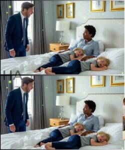 His twin boys were curled against the maid’s body on his bed, sleeping like they had finally found safety after months of fear.
