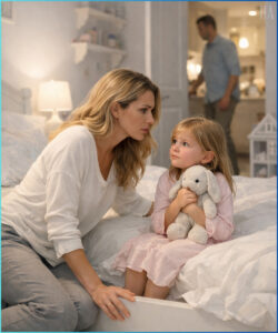 I moved closer with one hand against the wall because my knees had gone weak. The sound of water echoed softly. Daniel said something low, too low to make out. Then Lily’s voice, tiny and uncertain.
