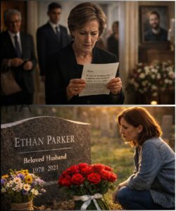 She turned her gaze back to Ethan’s stone. Her shoulders shook once, quickly, like a suppressed sob. Then she straightened again, the old habit of control trying to reassert itself.