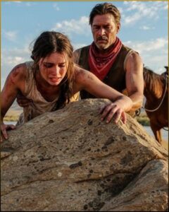 And then, it happened. The hooves were louder this time—three riders, not ranchers, not lawmen. They rode like they owned the land. James stood in the doorway, shotgun in hand, Ellie behind him, holding her breath. One of the men was the same one from before.