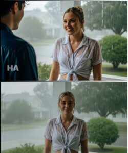 She crossed the threshold, dripping onto the small rug by the door, and Ryan caught the first clear look at her in the warm hallway light.