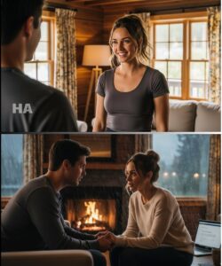 My throat felt dry, but I didn’t look away. “I mean,” I added quickly, panic rushing in like cold water, “you take the bed. I’ll take the floor. That couch is too short. I’ll wake up broken.”