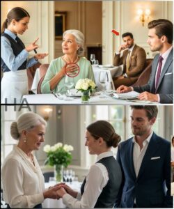 It was a quiet afternoon at the elegant Aurelia Hotel, the kind of place where polished marble floors whispered wealth and chandeliers reflected lives untouched by struggle. The dining hall was bright without being loud, expensive without having to announce itself. Linen tablecloths lay smooth as fresh snow. Glassware chimed softly, like it had been trained to behave. Conversations floated in careful tones, the kind that never risked cracking into something too human.