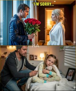 Rain wrote impatient Morse code against the tall hallway windows of the Riverside Grand Hotel, turning the city beyond into a watercolor of headlights and haze. Henry Carter stood outside room 1809 with a bouquet of red roses cradled in both hands, as if the stems were fragile bones.