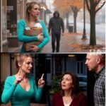 She just stood there in the downpour, shoulders trembling slightly, as if the storm had found the one soft spot she’d been keeping hidden.