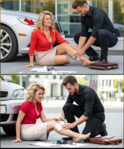 The woman tried to gather her documents, pain tightening her face, one ankle already swelling into a sharp, ugly mound beneath a sleek black heel.