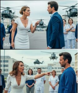 The helicopters angled toward the small public park two blocks ahead, the only clear landing zone near the hospital. Elias stopped dead, his resignation replaced by razor focus, because he recognized the choreography of urgency. The twin aircraft descended rapidly, kicking up a furious vortex of dust and debris as they slammed onto the grass with controlled violence. The roar was deafening, forcing people to cover their ears, and the park became a stage for something far larger than a city’s ordinary day. A rear ramp dropped from the lead helicopter, and a young officer in crisp uniform jumped out, scanning the crowd with a face tightened by desperate purpose. He ignored the arriving civilian emergency crews and the stunned police officers trying to establish a perimeter, bypassing all of them as if they were scenery. Then he cupped his hands and shouted into the engine roar with a voice that carried command and panic at once. “Where’s the doctor we need? Dr. Mercer!”