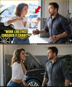 Daniel stood there with grease still under his nails, oil still on his knuckles, and the faint ache in his shoulders from four hours bent over a luxury engine that purred now like it had never known trouble. He didn’t move. He didn’t flinch. He didn’t give her the satisfaction of watching him scramble for dignity the way people scrambled for dropped bills.