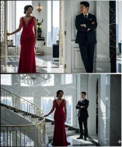 Her heels clicked against marble as she descended the grand staircase, each step deliberate. The chandelier above the foyer scattered prismatic light across the walls. Somewhere in the house, she heard the low murmur of Minho’s voice, probably on another phone call that was more important than his wife.