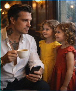 Dominic looked at the message. Then at the twins. Lily was trying to scrape the last ribbon of whipped cream from the mug with a spoon the size of her forearm.
