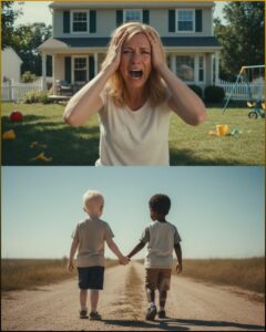 It was in this town that Sarah and Michael gave birth to twin boys. At first glance, the twins seemed like any other siblings, but the world would soon learn that Aaron and Elijah were no ordinary pair. One of the twins, Aaron, was born with albinism. His skin was pale as snow, his hair as white as cotton, and his eyes a striking shade of icy blue that seemed to glow in the sunlight. His twin brother, Elijah, on the other hand, was a striking contrast. His skin was rich and dark, yet his eyes—the same brilliant blue as Aaron’s—seemed almost impossible, a genetic miracle that left many in awe. The twins, bound by their unique connection, became an inseparable duo, each offering what the other lacked: Aaron’s gentleness and Elijah’s fiery energy. Despite their differences, the bond they shared was stronger than most siblings could ever understand.