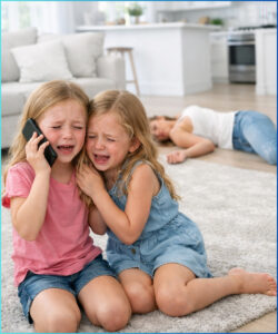 The nurse glanced at him, then at the girls. Something in her expression shifted from caution to decision. “Doctor Markham is with her. She has a head injury. They’re doing scans now.”