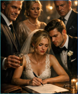 “If you sign tonight,” he said, “the wedding proceeds as planned. If not, it would be wiser to cancel now.”
