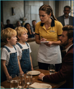 By the time she returned with the plates, the twins were sitting in stunned silence. Not transformed. Not magically sweet. Just confused enough to behave.