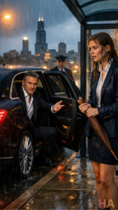 A woman standing alone in the rain did not get into a stranger’s luxury car just because the stranger looked expensive. Chicago had taught her better than that. Her father had taught her even better.