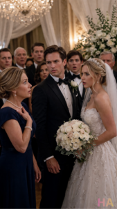 The bride—beautiful, blonde, draped in couture and diamonds—looked between us with irritation at first, then concern. Around her, the guests were beginning to notice.