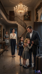 Her sister, Ava, stood one step behind her, older by three years and already more careful with her feelings. Ava did not cry. She only looked at him with a gaze far too steady for a child.